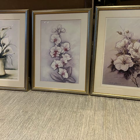 Hyväkuntoiset Arabian kukkataulut vuokot, kielo ja päivänkakkara. (suunnittelija: Utriainen)