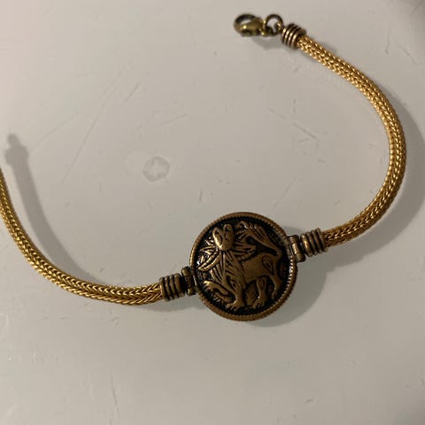 Erittäin hyväkuntoinen pronssinen Kalevalakorun Autinkoleijona korusetti. Setissä käsikoru sekä kaulakoru
