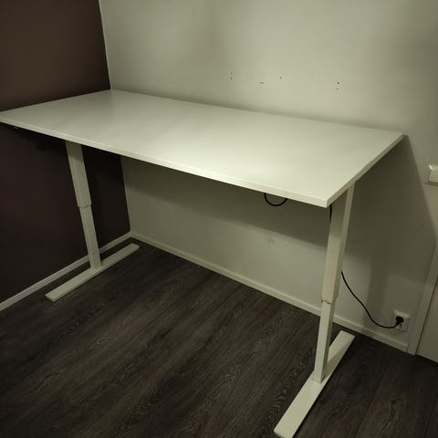 Käytetty, hyväkuntoinen sähköpöytä 140 x 140 cm.