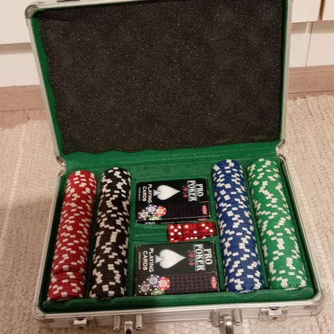 Pro Poker Texas Hold'em poker-setti sisältää pelikortit, pelimerkit ja pelipussin. Setti on tarkoitettu Texas Hold'em -pokeripelin pelaamiseen.