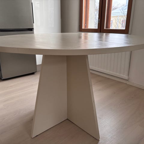 Muuton vuoksi myydään pöytä ja tuolit. Pöydässä reunassa pieni jälki.
