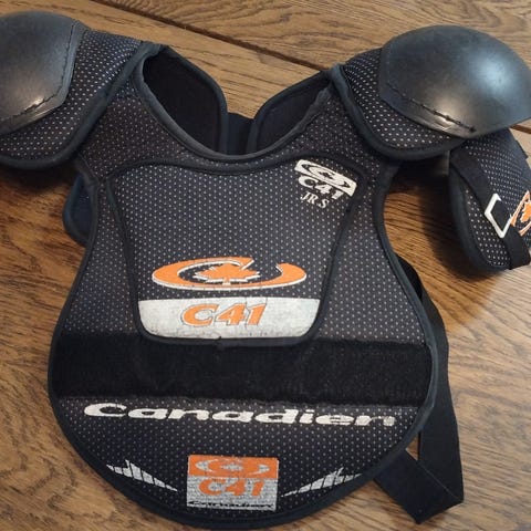 Bauer X60 jääkiekon rintapanssari punaisella ja mustalla värityksellä. Koko jr. L/G