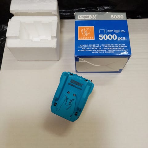 musta nitoja, sopii paperin niputtamiseen. Kompakti ja kätevä toimistotarvike.