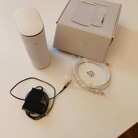 ZTE MC888 5G GPE -reititin tukee 5G-verkkoyhteyksiä. Laite toimitetaan alkuperäisessä pakkauksessa ja sisältää tarvittavat kaapelit ja ohjeet.