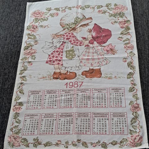 Myyntiin käyttämätön vuoden 1986 kalenteripyyhe.