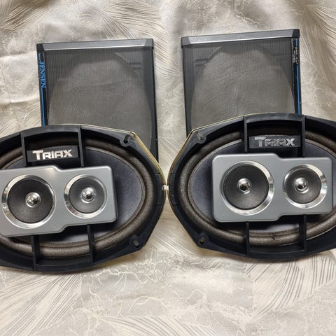 4kpl 8" audisystem.midbassot ja 2kpl audio system diskantit. Ja hifonics 2x500w vahvistin. Ollut chevy van sivuoveen kiinni. Ja tyhjä raggarplanka kaupan päälle sekä nahkapala että saa toi kotelo siisti myös. Jotain johtoja löytyy sit myös jos haluu ostaa niitä myös.