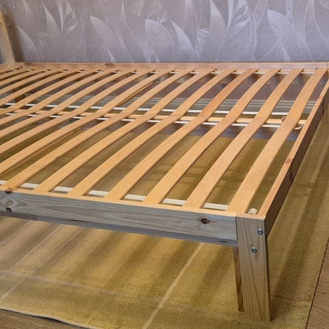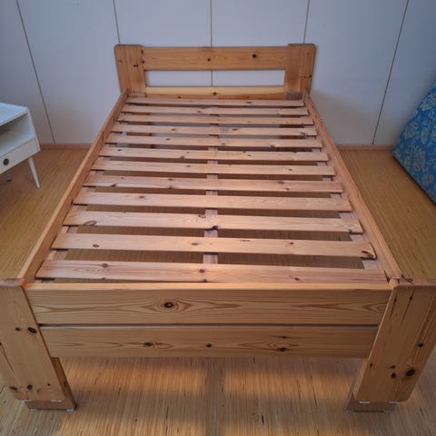 Uudenveroisessa kunnossa olevat Ikean sängyn kehikkö, vaahtomuovipatja ja petauspatja. Sängyn äärimitat kehikosta mitattuna 144x205cm. Ollut ”viikko kodissa” vierassänkynä, nukuttu ainoastaan yksittäisiä öitä. Ei käytönjälkiä. Taloudessa ei ole eläimiä, ei ole tupakoitu, eikä muitakaan hajuja.