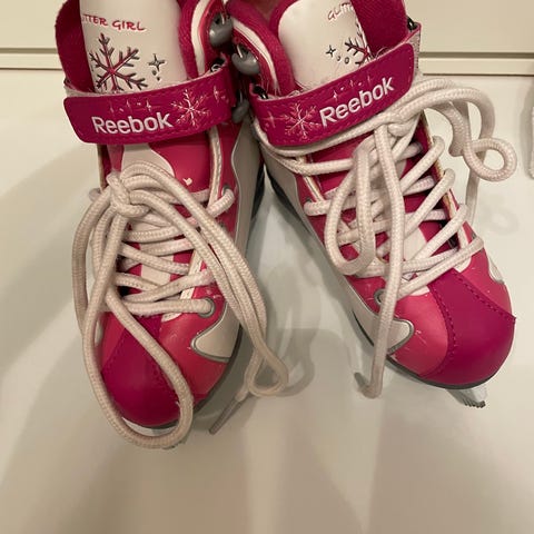 Reebok lasten luistimet, koko 27 (pohja 17 cm). Pehmeä vuori, Värit valkoinen ja punainen.