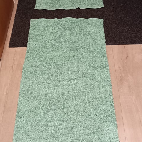 Kuvan metsänvihreät "räsy" matot.