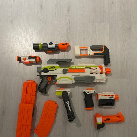 Toimiva, kuvanmukainen Nerf Modulus Tri Strike lelupyssy (ovh. 70€). Monta eri toimintoa. Muutama ammus hukassa. Mukaan saa halutessaan muutaman lisäosan. Nouto Kempele.
