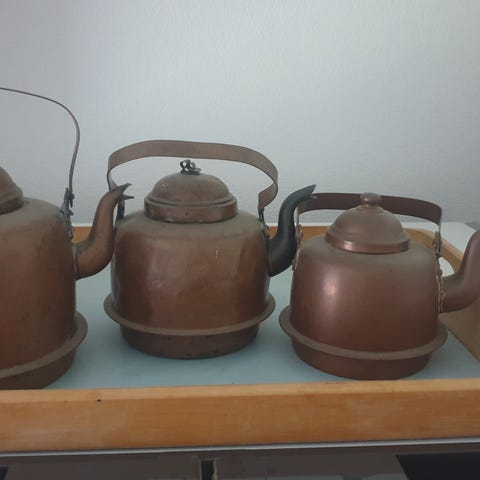Ehjät ja vanhat, vintage keittiöesineet käsintaottu kuparikahvipannu ja kahvimylly- / kahvipannu -aiheiset pyyhekoukut tarpeettomana!
