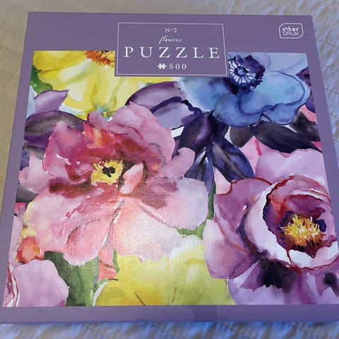 Myydään UUSI avaamaton pakkaus (tarrat kiinni) kukka-aiheinen palapeli. 1000 palaa.