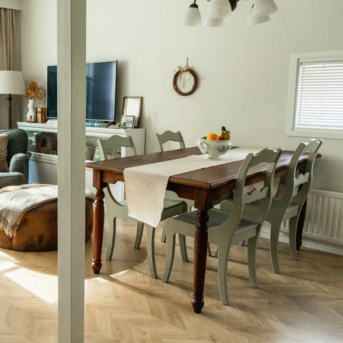 Pöydän tyyli on moderni retro, joka yhdistää yksinkertaisen muotoilun ja käytännöllisyyden.
