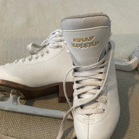 Graf Bolero lasten taitoluistimet koko 36, väri valkoinen. Vuorattu sisältä, tukee nilkkaa ja jalkaa.
