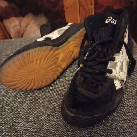 Vähän käytetyt Asics painitossut. Mä olen käyttänyt näitä ihan vapaa-ajan jalkineita, en vääntänyt molskilla näillä. Kengän sisämitta on noin 30cm.
