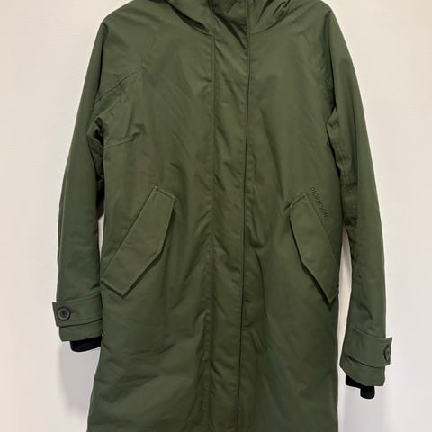 Myyntiin hyväkuntoinen ja siisti Didriksson Luna Wins parka kokoa 44. Väri musta. Vähällä käytöllä ollut. Paljon yksityiskohtia, kiristysnyörejä ja taskuja. Huppu. Vetoketju sekä nepparisuljenta. Lämmin tikkivuori. 100 % vedenpitävä. Kainalo-kainalomitta 62 cm.