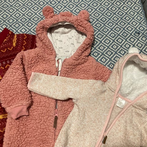 Hyvässä kunnossa oleva 68cm vauva lämmin välipuku/välikerrasto. Pinnassa hieman kulumaa pesusta, mutta väri säilynyt kuitenkin hyvin. Ei hajusteita/eläimiä.