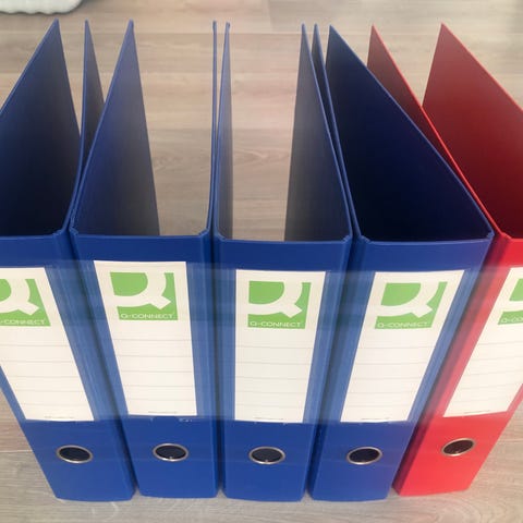 Erilaisia kansioita ja mapeja eri väreissä