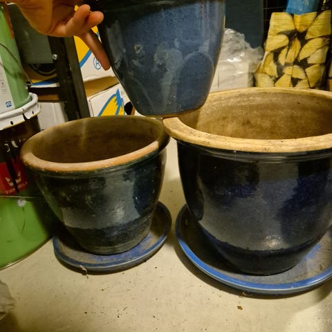 Kuvassa olevat kukkaruukut ja koriste kivet ja kukkamulta. Kaikki yhteishintaan 2e.