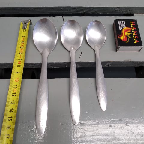 Lusikoita kahdessa koossa 8 kappaletta , uushopea / alpakka , 70-luku