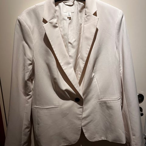 Myydään hyväkuntoinen H&M:n musta bleiseri, koko 44. Klassinen malli, jossa on kaksi nappia edessä, kauluskäänteet ja kaksi etutaskua läpillä. Vuorattu sisäpuolelta. Sopii hyvin sekä arkeen että juhlaan.