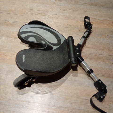 Erittäin hyväkuntoinen Bumprider seisomalauta istuimella. Istuin on helppo irroittaa ja kiinnittää kesken matkan. Seisomlaudan kiinnitys rattaisiin/vaunuihin on universaali ja hyvin säädettävissä. Kiinnitys sujuu myös nopeasti. Erittäin näppärä käytössä.