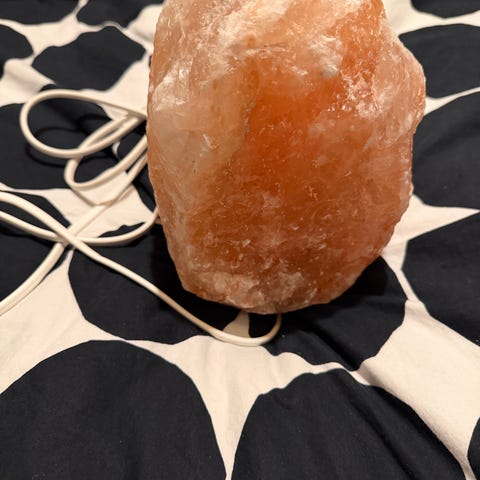 Elämää nähnyt, mutta täysin toimiva himalajansuolalamppu. Saa vähän siistittiyä kun viitsii. Painaa kuin mikä 😆
