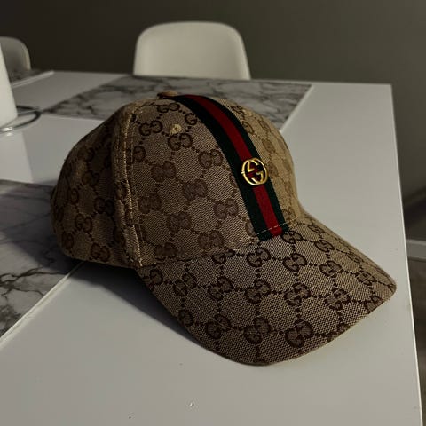 Musta Guccin lippis ostettu italiasta tuli käytettyä ehkä pari viikkoa. Ei mitään käytön jälkiä