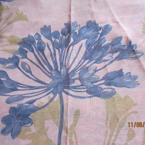 Puuvillainen, käyttämätön verho, pieni vaalea läikkä näkyy kolmannessa kuvassa, tullut jo valmistuksessa. Helmassa käännös 7,5cm.
