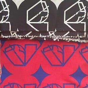 Pala punaista kangasta kultaisilla tähtikoristeilla.