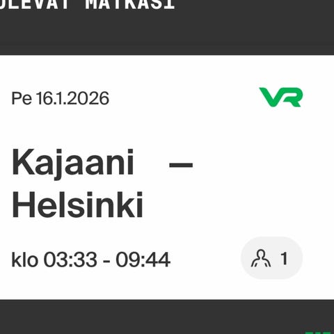 1 aikuinen lippu Kajaani - Helsinki 16.1.2026 klo 14.14