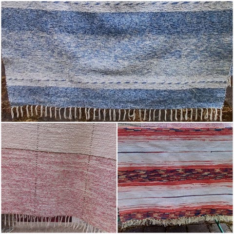 Lyhyet Muovimatot 3 kpl mitat 70 x 100 cm 70 x 115 cm ja 70 x 120 cm matot on kuvattu molemmin puolin puhtaat pesty mäntysuovalla 2 matossa on ollut pieni reikä mutta jotenkin korjattu kaikki yht 15 € kysy lisää tule katsomaan kulkeutuu sovittaessa lähialueelle