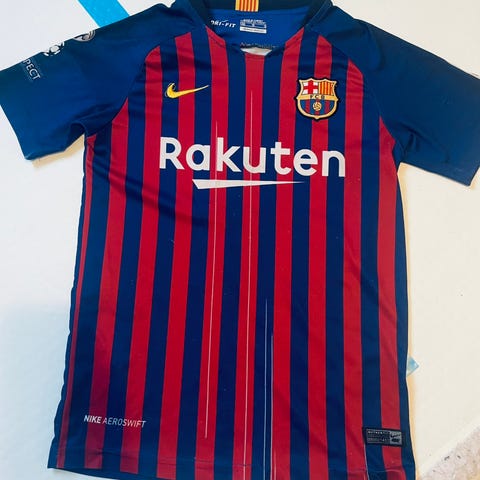 Barcelona paita jossa on Messi, Neymar, iniesta, pique ja suarez. Pienenä käyttänyt mutta en moneen vuoteen