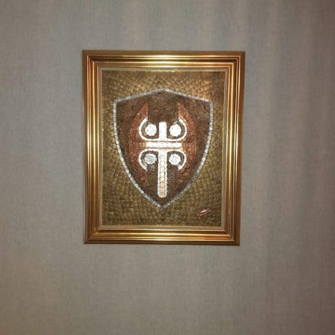 Hyvinkään Tahko voitti vuonna 1978 pesäpallon mestaruussarjassa ensimmäisen mitalinsa (pronssia) ja tämä on sen muistoksi tehty taulu, jonka keskellä on kookas mitali. Mitali on noin 1 cm paksu. Taulun koko on 16 x 22 cm.
