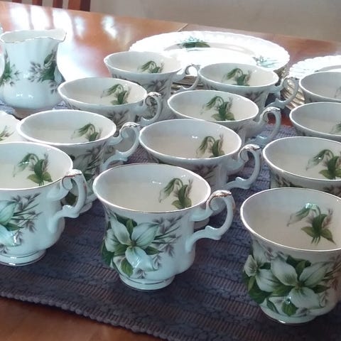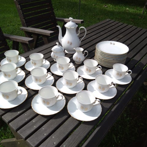 Hyväkunoiset Royal Standars kahviastiat (kuppi, asetti, lautanen) 9:lle hengelle.