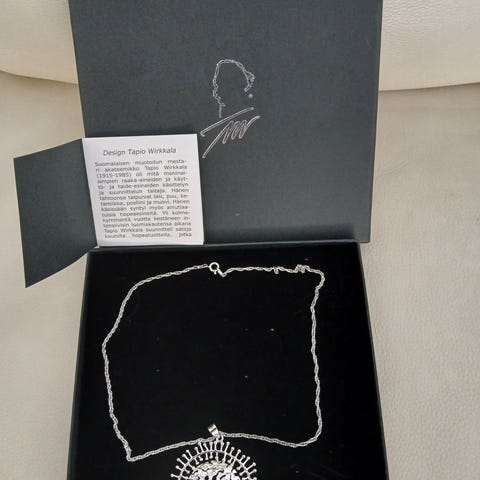 Tapio Wirkkala Omena kaulakoru. Riipuksen mitat n. 3,0 x 2,5 cm. Ketjun pituus n 64 cm.