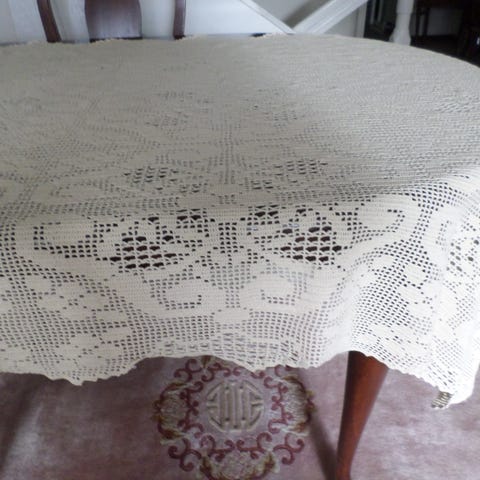 Käsin virkattu näyttävä pyöreä pitsiliina