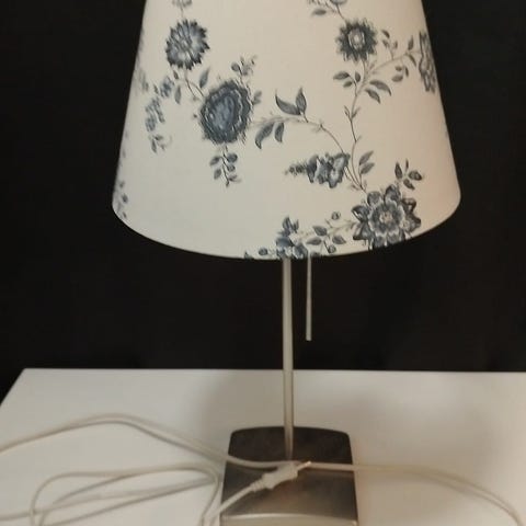 Hyvä kunto ja toimii. Korkeus 47,5 cm varjostimen kanssa. Jalassa kaiverrus Tampereen tapettitehdas Oy. Nouto Eteläisistä tai kulkeutuu sovitusti Hämeenlinnaan/Hyvinkäälle.