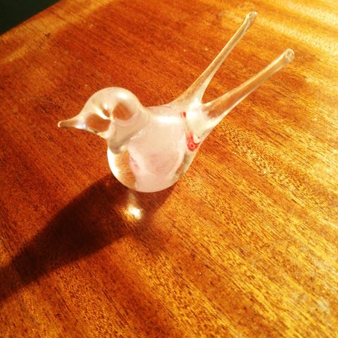 Värillinen lasinen koriste-esine, jossa on useita eri värisiä lasiosia. Käytetty lasitekniikka mahdollistaa valon läpäisyn ja värien heijastumisen. Sopii sisustukseen ja koristekäyttöön.
