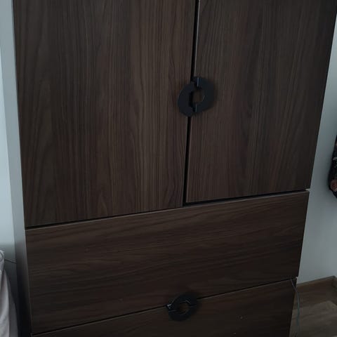 Myydään Ikean Aspelund vaatekaappi, jossa on kätevät sivuhyllyköt, sekä vaaterekki sisällä.