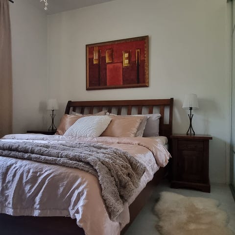 Kiteen sänky ja yöpöytä setti puu ruskea