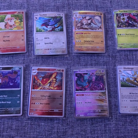 Myydään noin 300kpl pokemon kortteja eri sarjoista vuosilta 2023-2025. Sisältää myös kiiltäviä sekä rare kortteja. Energy- ja livekortteja saa halutessaan mukaan.