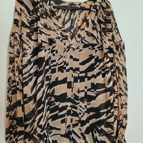 Beessi tahraton sifonki paita, kaksinkertainen kangas, hiukan joustaa. Koko M olkapää-helma 58 cm ja kai-kainalo 50 cm, v - mallinen helma