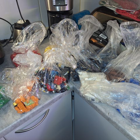 The legos are played by a girl, so there are gardens, Elsa theme and cities with missing pieces.