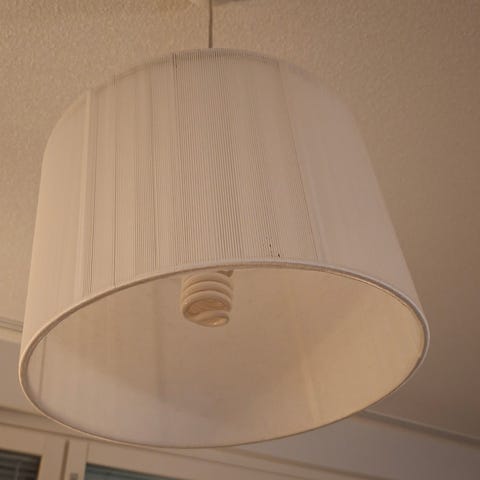 Valkoinen pyöreä kattovalaisin ja ripustin
