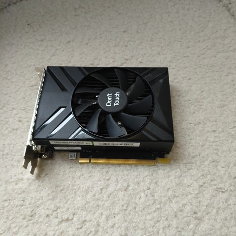 Suurella jäähdytysrivalla varustettu GTX 1050TI KalmX -näytönohjain.