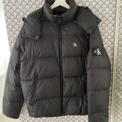 Siistikuntoinen miesten Calvin Klein untuvatakki kokoa L. Toisen taskun vetoketju rikki.