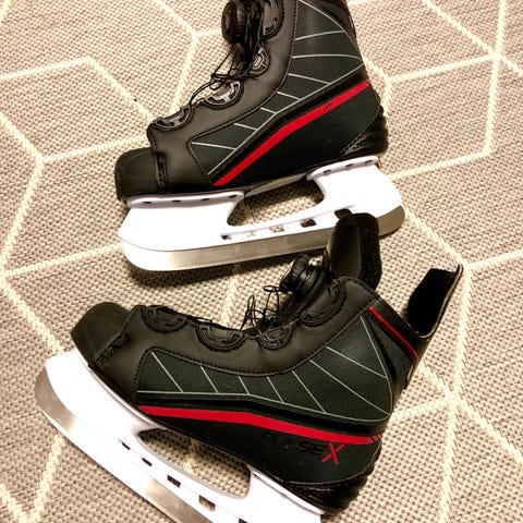 Reebok luistimet, lasten koko 36. Mustat väriltään, valmistettu kestävistä materiaaleista. Paikoitellen kuluneet.
