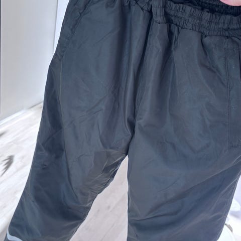 Housuissa joustava vyötärö ja vetoketjut lahkeissa. Takissa huppu ja useita taskuja. Materiaali on tukeva ja pitää hyvin lämpöä.