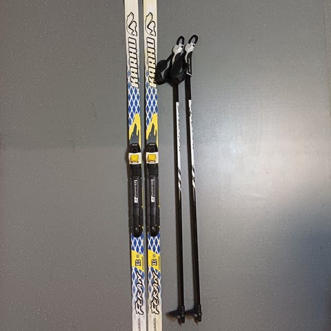 Karhun sukset 140 cm (NNN-side), sauvat 90 cm tai 105 cm